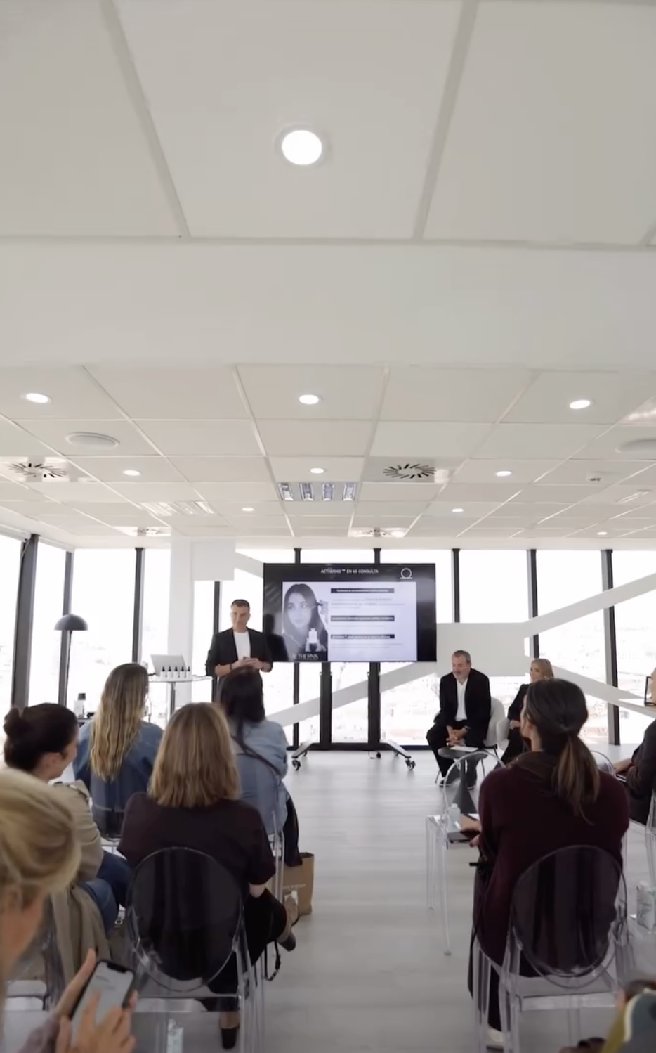 Se realizó una presentación en un precioso ático de Gran Vía con vistas a todo Madrid. Tras una explicación de la firma realizada por el propio fundador, se realizó una mesa redonda con expertos dermatólogos y médico-estéticos. Las asistentes eran periodistas de belleza, editoras e influencers expertas en skincare.