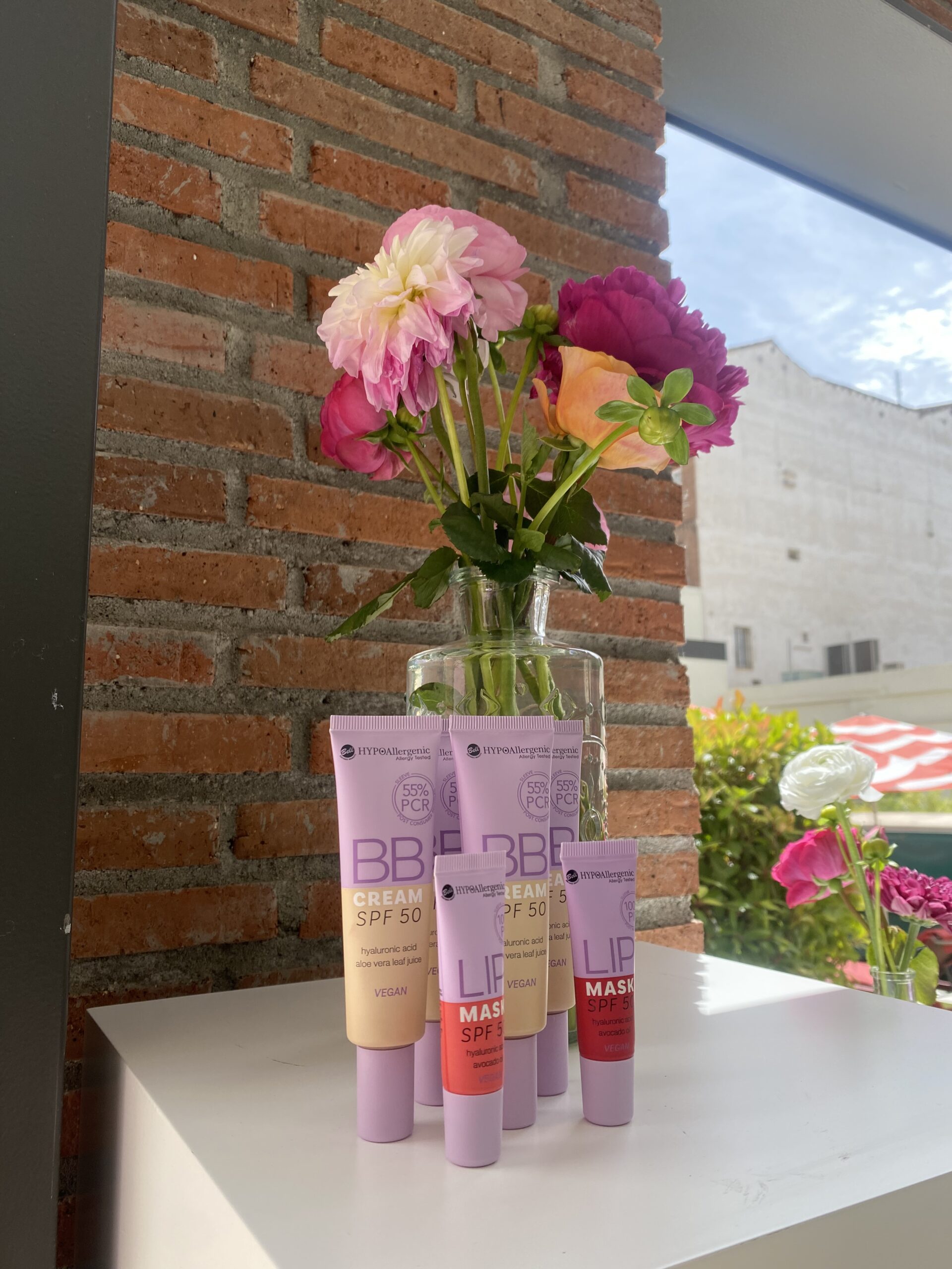 BB Creams y labiales con SPF cuyo diseño y colores evocaban un SUNNY DAY. Siguiendo este lema y las bonitas tonalidades de la gama, propusimos un espacio en el centro de Madrid, el patio interior de un mágico hotel, con una carpa al aire libre y una mesa comunal. Llenamos todo de flores y pequeños jarrones con las tonalidades de la línea.